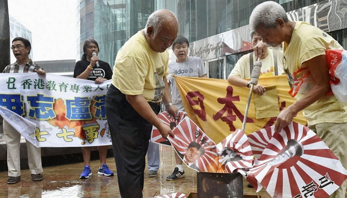 香港メディアによると、尖閣諸島(沖縄県石垣市)の中国領有権を主張している香港の活動家で組織している「保釣(釣魚島防衛)行動委員会」などのメンバーら約20人が参加。この日は日中戦争の発端となった「盧溝橋事件」から80年にあたるとして、抗議を行った。