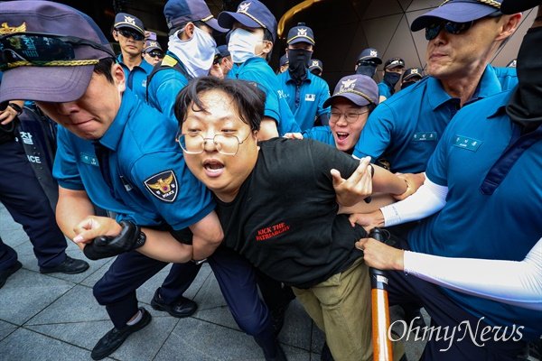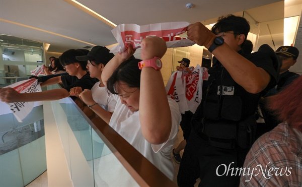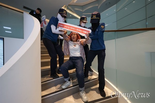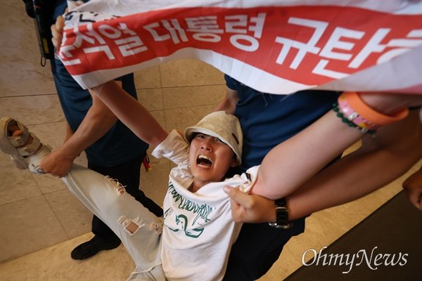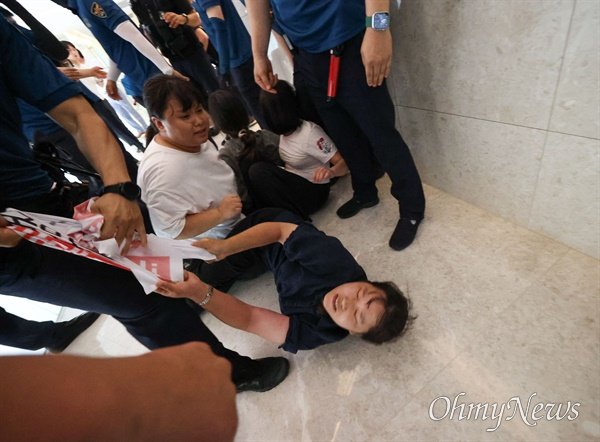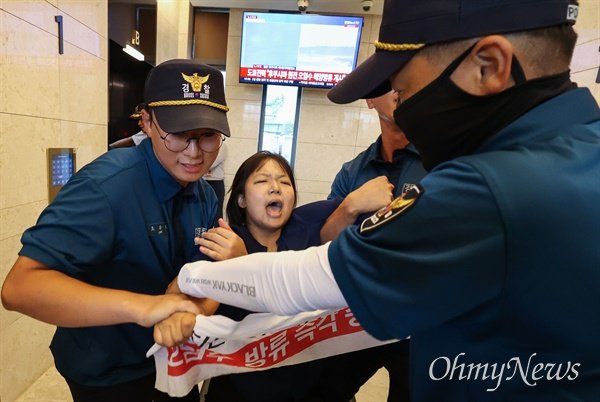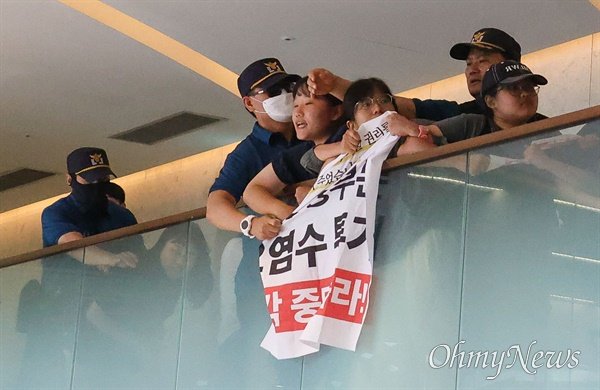 「海はゴミ箱か」 日本大使館ビル内奇襲デモ