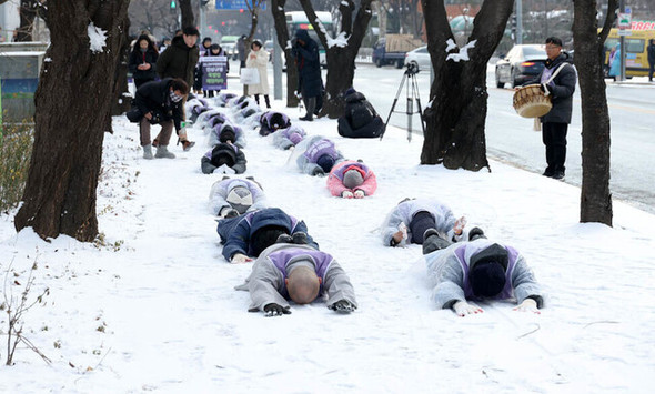 寒い雪の中 行倒れコントかよ 本当にチョンは笑わせてくれるよ🤣