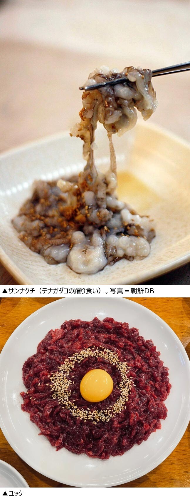 広蔵市場で商売をしている人は「外国人は思ったよりユッケが好きだ。サンナクチとユッケが一緒に出てくるメニューがあるが、タコが動くのを見て写真を撮りながら不思議そうにしている」と話す。広蔵市場近くの不動産店経営者(65)も「市場にある有名なユッケの店は新型コロナウイルス感染症流行時に客が減って廃業寸前だったが、外国人の間でユッケが人気になり、再び繁盛している」と語った。