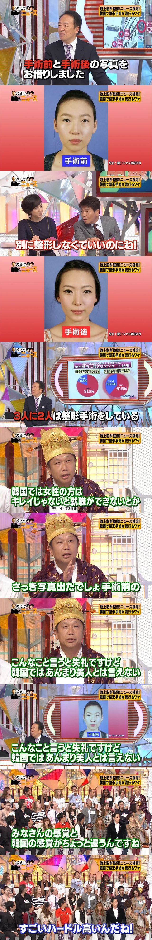 お笑いコンビ「オリエンタルラジオ」が、韓国・ソウルの有名女子大前で直接リサーチしたとこ ろ、学生らは次々に笑顔で整形の存在を明かした。