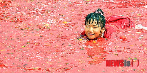 女が気に入った男にトマトぶつけてアタックするらしい。
