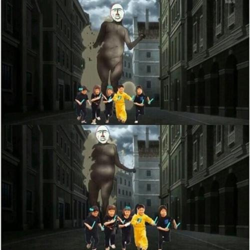 巨人に追われている人の顔にはSHINeeのメンバーの顔が、