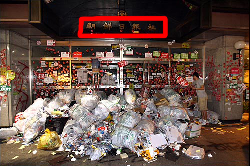 ネタの宝庫、朝鮮日報本社前。