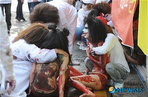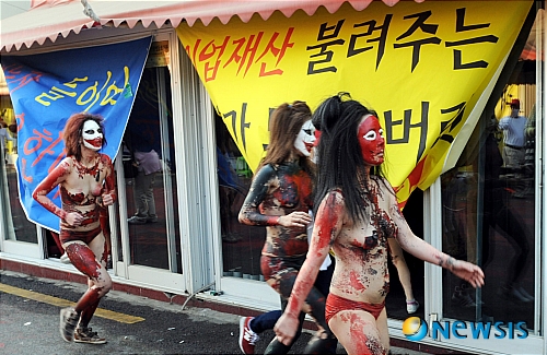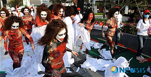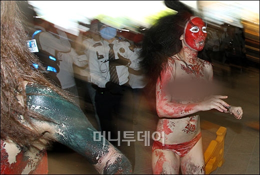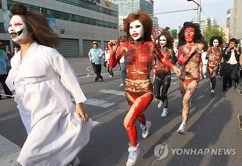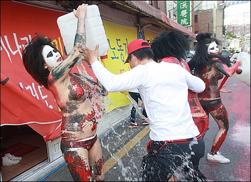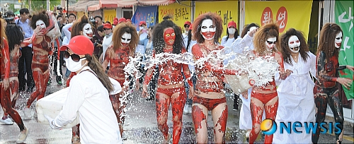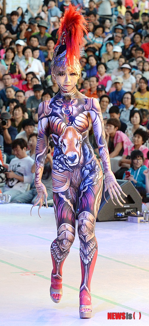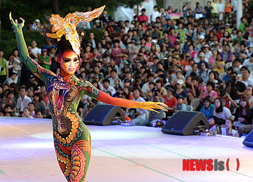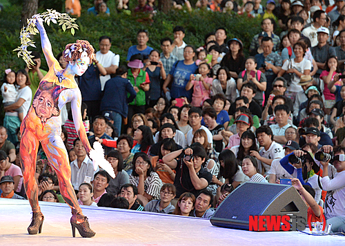 1日午後、大邱市達西区の頭流公園野外音楽堂で、「2013大邱国際ボディーペインティング・