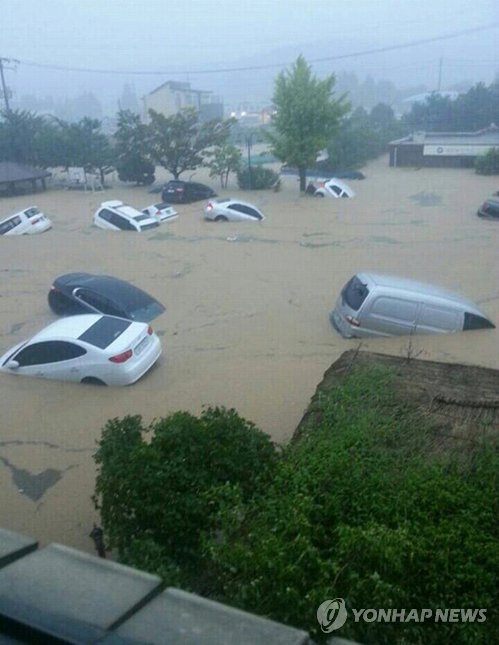 釜山では観測史上2番目となる1時間当たり130ミリの猛烈な雨を記録した。豪雨により地下車道で浸水した車の中から2人が