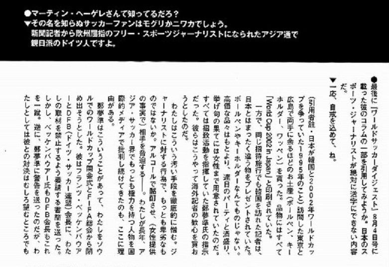 2002日韓W杯招致活動における鄭夢準氏の悪行。