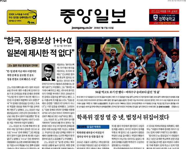 中央日報は17日<河野単独インタビュー「徴用葛藤で信頼こわれて...韓、明日まで仲裁に応じよ」>というタイトルの記事を通じて日本側の立場を伝えた。また、韓日請求権協定と関連しては「国交正常化の法的基盤になってきた約束(1965年請求権協定)を50年以上すぎて韓国側が一方的にひっくり返した」という日本外相の話をそのままのせた。