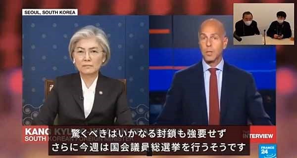 ▲ 『日本のメディアが伝えない週刊韓国ニュース』が、今年4月20日に投稿した動画。日本の劣悪なコロナ対処の現実と、康京和(カン・ギョンファ)外交部長官のインタビューを盛り込んでいる。