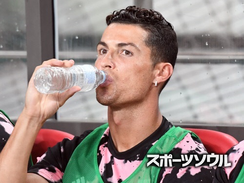 親善試合当時、ベンチで水を飲むクリスティアーノ・ロナウド