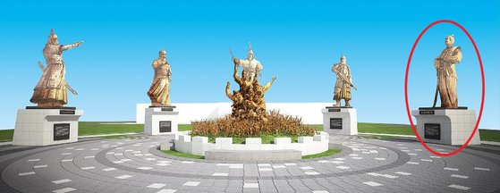 全羅南道順天市が推進している「韓中日平和庭園」鳥瞰図に登場した壬辰倭乱時の日本武将、小西行長の銅像(赤丸の部分)。[写真 順天市]
