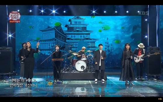 11日、KBS(韓国放送公社)が旧正月元旦(ソルナル)企画で放映した国楽基盤の音楽番組『朝鮮ポップアゲイン』で舞台の背景イメージに日本風の城が登場して論争になっている。[写真 YouTubeキャプチャー]