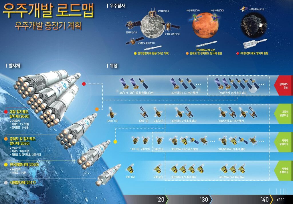 これ以外にも、政府は2030年に我らのロケットを利用した月面着陸を推進している。ます来年に月軌道線を打ち上げる。また2029年には、地球に近付くアポフィス(小惑星)に対する探査計画も準備中だ。小惑星探査は現在まで、米国など4か国だけが成功している。このため政府は韓国型衛星航法システム(KPS)の高度化、民間の宇宙開発参加支援などのロードマップを提示した。このうち、2035年の導入を目標に開発中のKPSの経済的波及効果は、約12兆6902億ウォンと推定される。